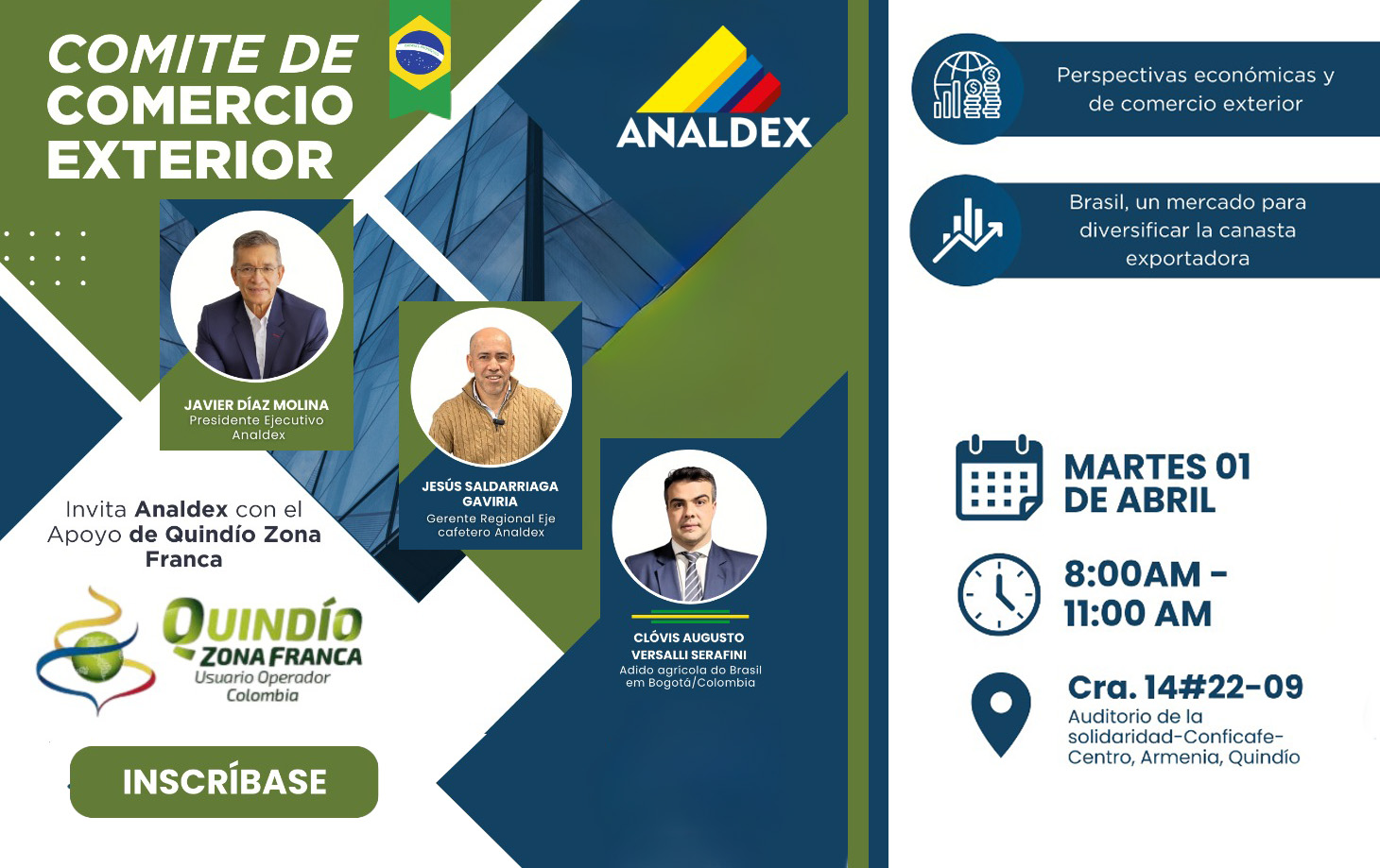 El próximo 1 de abril, Quindío Zona Franca se enorgullece de apoyar, junto con Analdex, un Comité de Comercio Exterior
